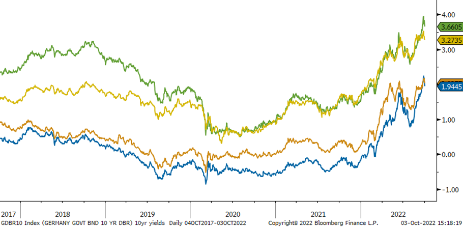 Ungefär samtidigt som den brittiska centralbanken också höjde räntorna med 50 punkter, aviserade den nyinsatta brittiska regeringen massiva skattesänkningar under de kommande åren. Avsikten är att öka den ekonomiska tillväxten. De finansiella marknaderna var inte långsamma i sin kritiska bedömning av planen, och den brittiska valutan rasade och räntorna sköt i höjden. Centralbanken var alltså tvungen att subventionera köp av egna statsobligationer för att undvika en kollaps på finansmarknaderna. Det ironiska i detta kaos var att följande måndag var den planerade starten på centralbankens kvantitativa åtstramning efter covid. Istället blev det mer kvantitativa lättnader. Kanske är det så här flera centralbankers åtstramningsplaner kommer att sluta.